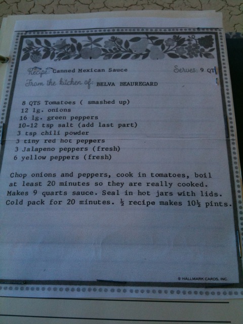 I can remember every year she would have us grandkids (usually unwilling) help her peel freshly blanched tomatoes for canning and sauce. My fingers got so scorched and turned to raisins from peeling them for hours! Her garden would produce more than she knew what to do with every year, that meant lots of work, but lots of great Mexican Sauce (as she called it) all year long!