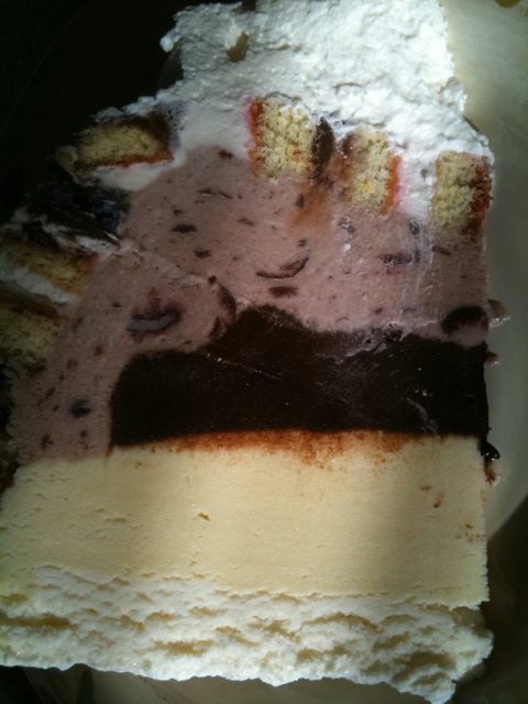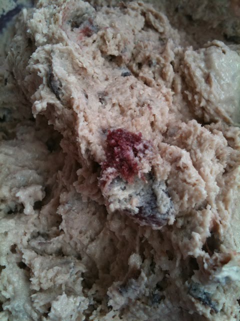 After the cherry ice cream froze again I added the hot fudge sauce and placed in the freezer again for it to harden.